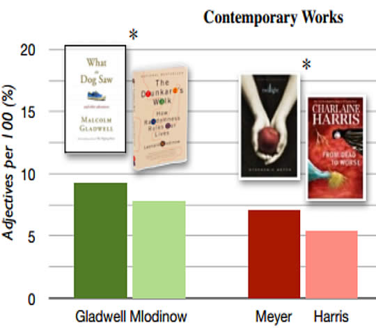 Want to make your next book a best-seller? Use more adjectives. It seems to work for authors ranging from Mark Twain to Malcolm Gladwell. Data from a Purdue University study shows that use of descriptive adjectives correlates with higher book sales:
