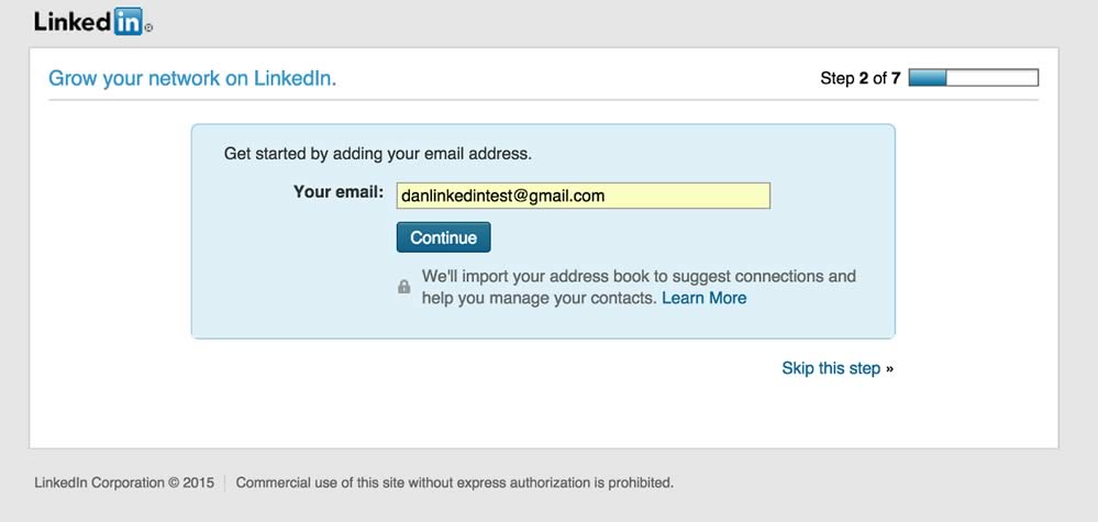 That’s just one of many ways LinkedIn’s UI makes it easy to give up your contacts. Check out this step in the signup process.