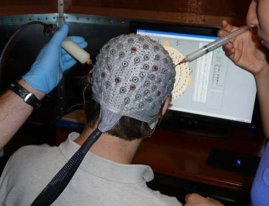 The real story: This is actually a photo of gel injection prior to collecting EEG data. (Performed properly, this doesn’t involve actually penetrating the skull!) There’s ongoing discussion about the use of “wet” vs. “dry” EEG setups in the neuromarketing industry. Systems that use gel to improve contact between the electrode and scalp are generally thought to provide higher quality data, but the use of messy gels is a major inconvenience for the subjects. Firms that use dry contacts feel that the data collected is still suitable for their purposes, and they can usually employ larger sample sizes in their testing.