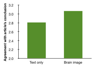 A specialized case of this phenomenon was illustrated several years ago when research studies shown to neuroscientists were shown to be more credible when accompanied by fMRI brain scan photos, even though the scans were not related to the conclusion of the paper. (See Brain Image Bias.)
